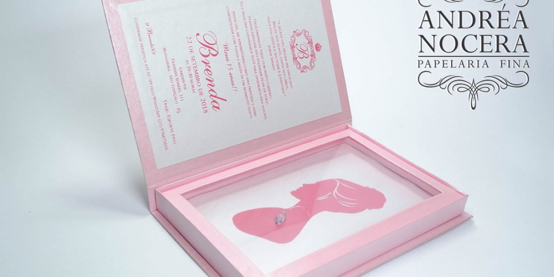 Gênova Cód. 33101 – Convite de Debutante com colar Convite 15 anos Debutante Rosa Genova Linha Especial Debutante 7 pics