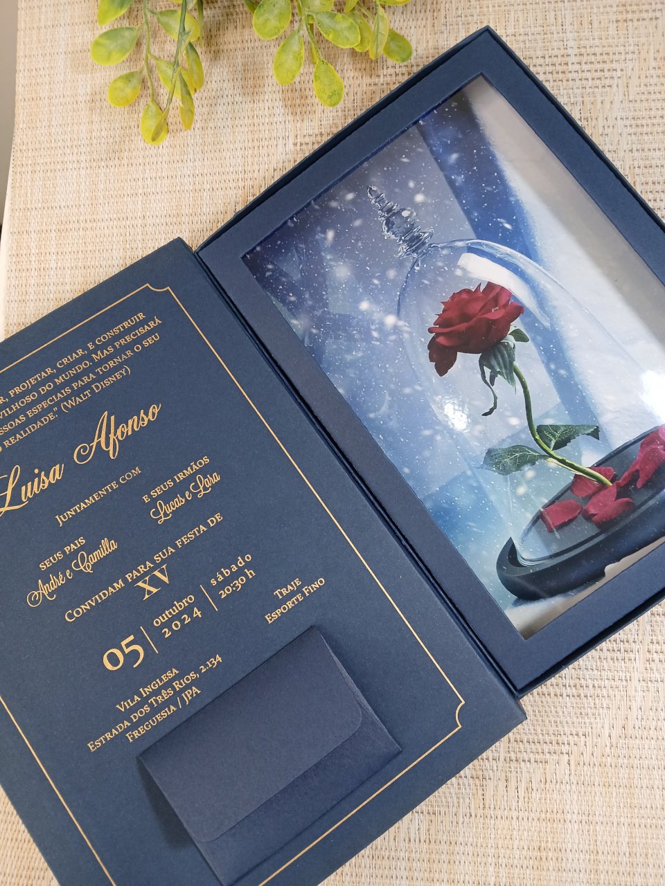 Encante seus convidados com um Convite de 15 anos com o Tema A Bela e a Fera. Modelos cartonados, personalizados e sofisticados para transformar sua festa em um verdadeiro conto de fadas!