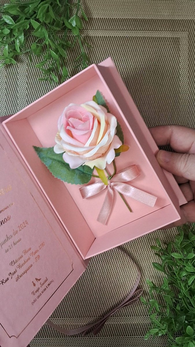 Um lindo Convite com Pétalas Rosa para 15 anos.