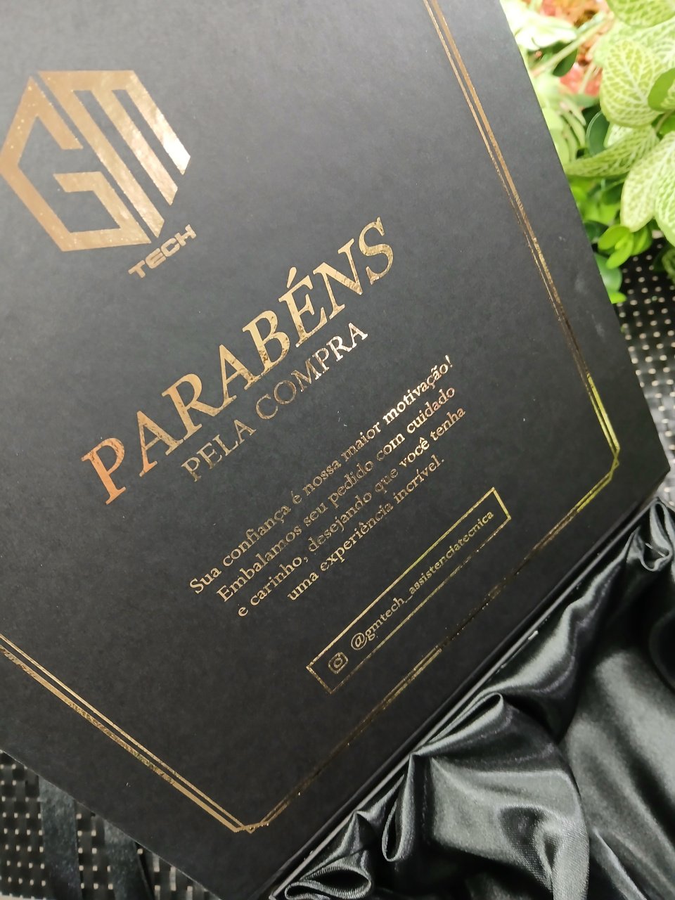 O convite de caixa corporativo dourado e preto transmite sofisticação e exclusividade. Com logo em relevo dourado na tampa, o design valoriza a identidade da empresa e impressiona convidados desde o primeiro contato.