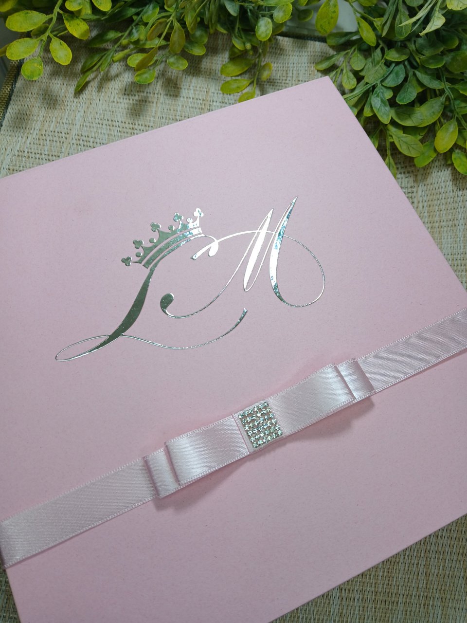 - Caixa cartonada rosa personalizada, que protege e valoriza o convite.